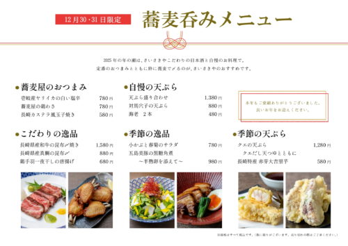 また、30日・31日の二日間は、お蕎麦を最高の状態でお出しするため、