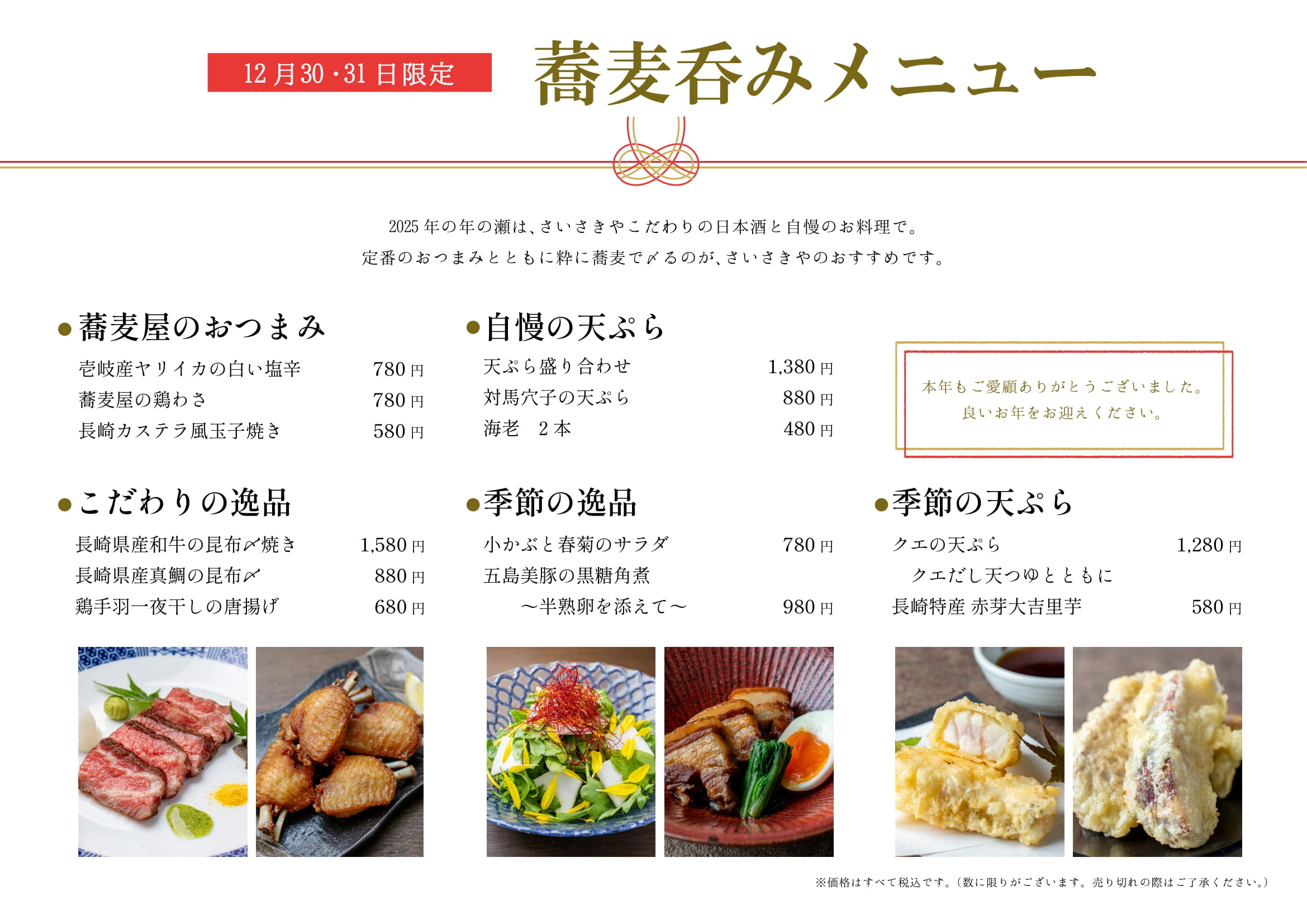 職人が打ち上げる本格的なお蕎麦で、どうぞ健やかな新年をお迎えください。